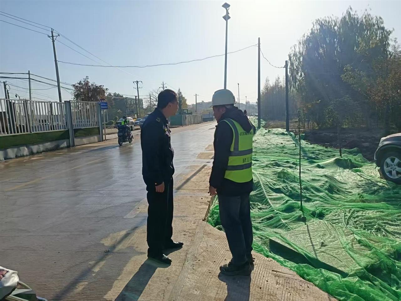 12月5日,张柏路的道路施工正酣,而地下埋设的燃气管道却牵动着执法人员的心。大型机械开挖作业稍不留意,就可能碰伤燃气管道,引发泄漏风险。执法人员带着专业检测设备,沿着施工线路一路排查,逐段检测管道气压、探查泄漏点,在施工现场和施工队反复沟通(见下图):管线位置一定要摸清,施工时得有人盯着,可不能蛮干。他们仔细核对施工范围与管道路线的重叠区域,现场叮嘱施工方落实专人监护、规范作业流程,把风险掐灭在萌芽状态。