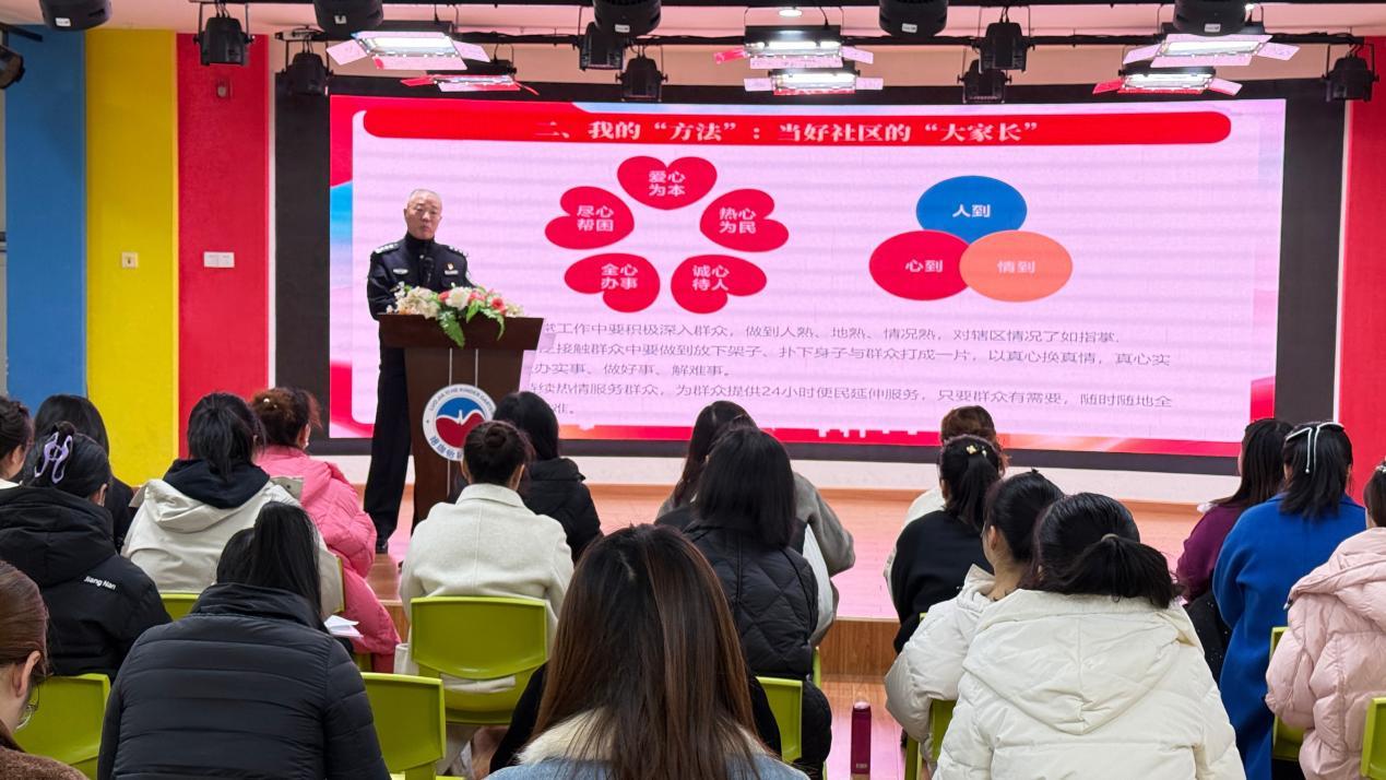 “咱们干事的方式特别像!”沈胜文把话头引向了台下的老师,“我要求自己‘敲得开门、说得上话、交得上心’。你们每天不也正是需要‘弯得下腰、听得懂话、走得到孩子心里’吗?”自己帮扶社区里的“困难户”、调解邻里纠纷,就像老师们处理各种大大小小琐碎的事务一样,都需要对服务对象保持耐心、爱心。“你们在孩子心灵这张‘白纸’上画下的第一笔色彩,可能影响他一生,为未来的社区培养善良、明理的居民。今天恰逢国家宪法日,法治意识的培育、规则精神的树立,也要从娃娃抓起,这和我们共同的‘初心’息息相关。”