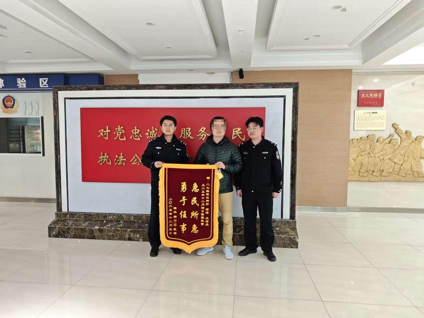 12月5日,邢先生专程来到二七街派出所,将一面写有“救民所急、勇于任事”的锦旗送到民警手中,再次向民警表达谢意。