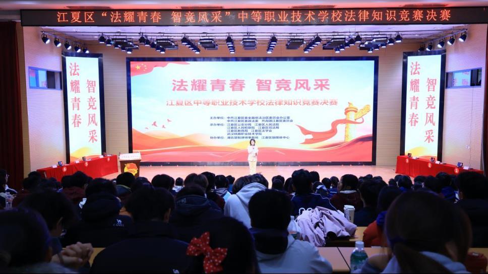 12月5日上午,由共青团江夏区委员会主办的江夏区“法耀青春 智竞风采”中等职业技术学校法律知识竞赛决赛,在武汉铁路职业技术学院成功举行。区委依法治区办、区委政法委、区教育局、区人民法院、区检察院、区公安分局、区司法局、区法学会等部门及湖北楚智律师事务所的领导专家齐聚一堂,与现场650余名师生共同观摩比赛。