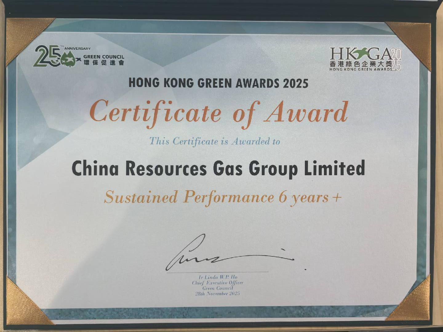 11月28日,2025年“香港绿色企业大奖”颁奖典礼在中国香港举行,华润燃气凭借其在环保、安全及健康领域的卓越表现,第七次荣获“超卓环保安全健康奖”金奖殊荣,彰显了华润燃气在推动绿色低碳发展中的领先地位,更体现了其对可持续发展理念的深度践行。