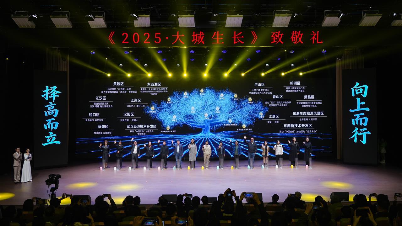 冬日的东湖之滨,暖意融融。12月8日下午,湖北日报传媒集团楚天演播厅内灯火璀璨、掌声雷动,“2025・大城生长”城市致敬礼活动如期举行。