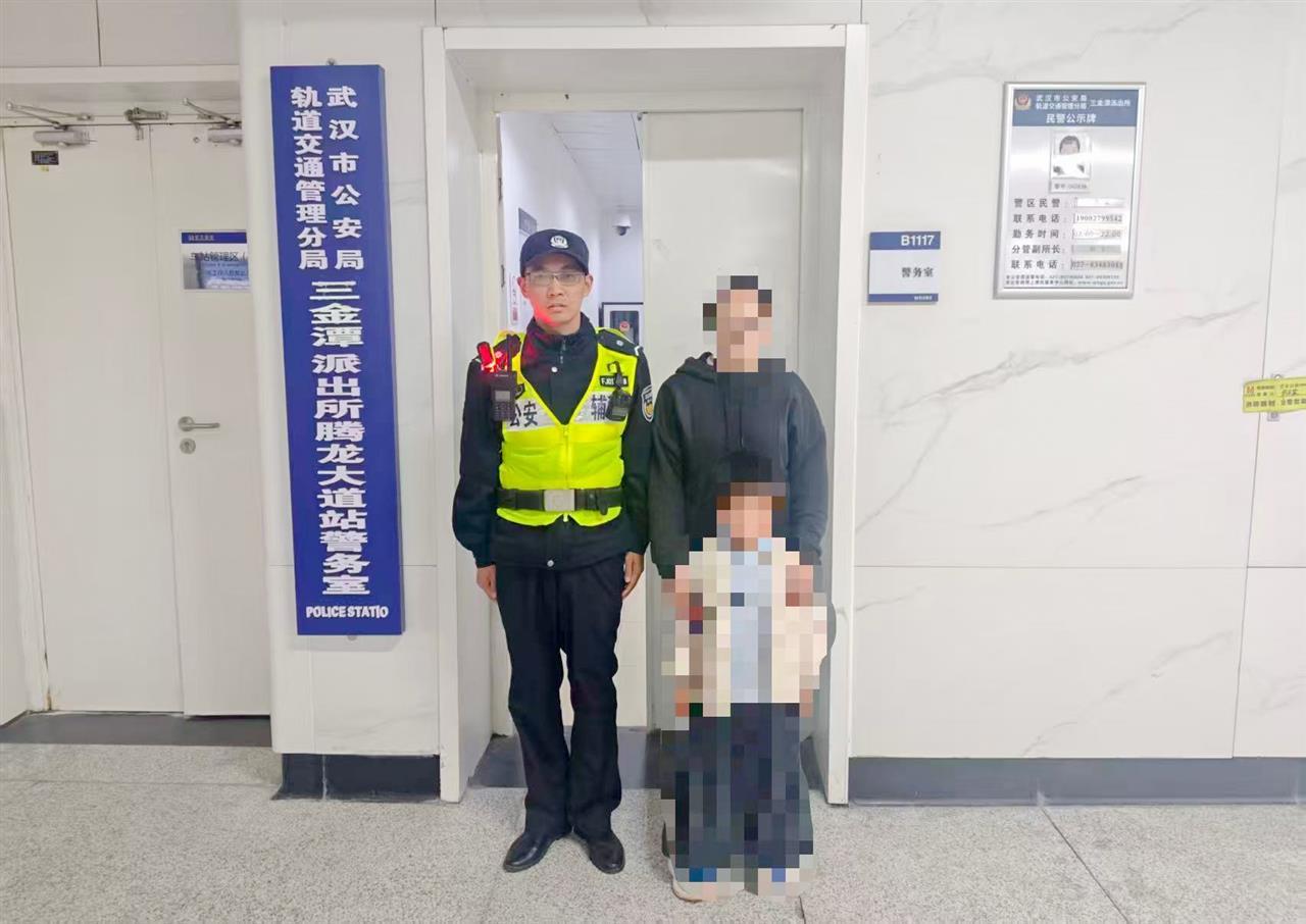 当天14时24分许,武汉市公安局轨道交通管理分局辅警刘宗在地铁7号线腾龙大道站执勤时,发现一名男孩独自在安检处徘徊,身边没有大人陪同,神情无助,疑似走失。