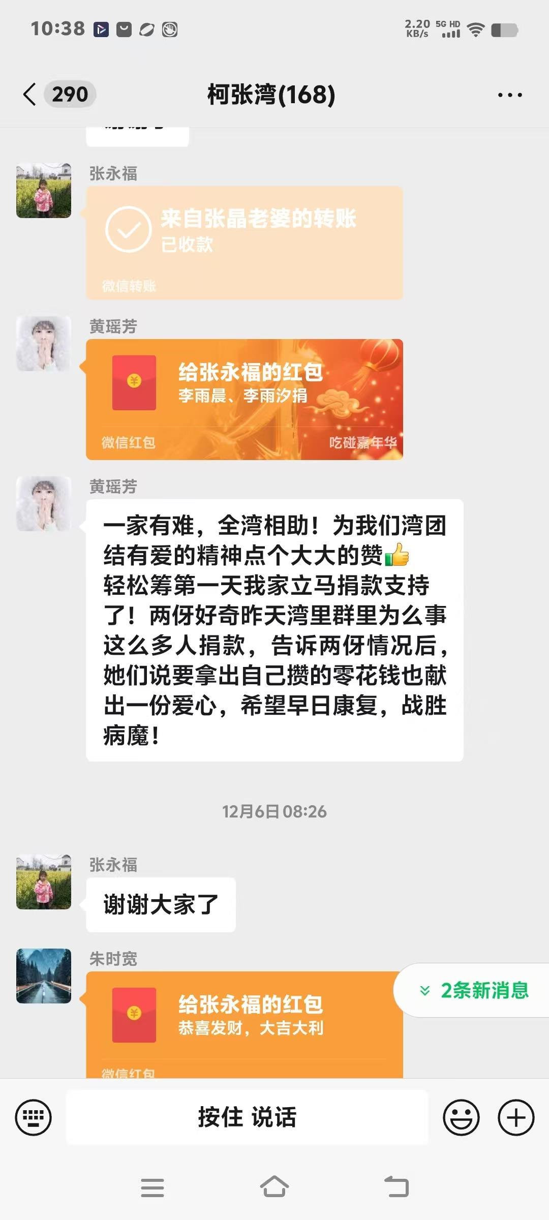 “黄某某突发重病急需用钱,恳请乡亲们伸把手!”12月6日,施庙村退休老支书张月波得知情况后,在柯张湾村民微信群发出爱心倡议。消息一经传开,村民们纷纷响应,50元、100元、200元……一笔笔爱心款陆续汇集到张月波手中,短短几天便有60多户村民参与,累计捐款超1万元。