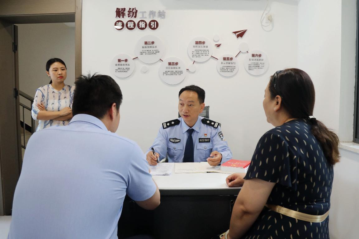 国徽高悬,审判席、公诉席、被告席、辩护席依次排开。在武汉东湖新技术开发区茅店派出所当代社区警务室二楼,这个不大的“速裁法庭”成为化解矛盾的前沿阵地。