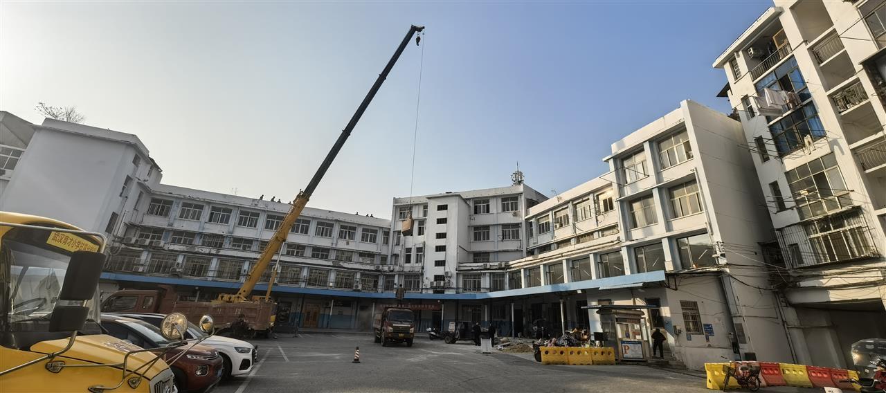 据悉,该老客运站综合楼位于黄陂区百秀街2号,建成于1976年,为四层砖混结构(局部五层),至今已使用近50年。此前,客运公司发现房屋存在严重问题:四层至屋面层部分砼梁、砼板因钢筋锈蚀严重露筋,整体结构缝处严重渗水,已影响正常使用。为排查隐患根源,客运公司委托专业单位开展初步勘察,最终确定问题核心在于楼顶屋面搭建的简易平房。这些历史存量的搭盖建筑物俨然形成了“楼上楼”,不仅破坏了原屋面防水层,还阻碍了后续维修工作,导致屋面长期积水渗漏,严重影响建筑整体承载能力,形成重大安全隐患。