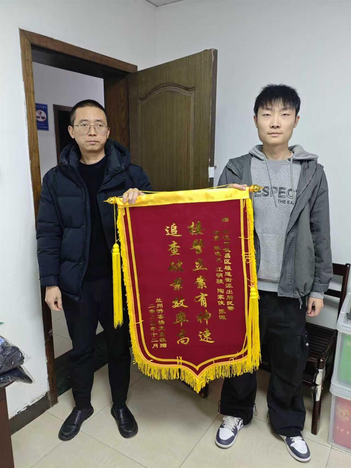 12月3日下午,粮道街派出所民警收到远在兰州的杨先生寄来的锦旗。杨先生还打来电话,说,自己来武汉参加演讲,事先已经定好返程时间。回到兰州后,他定制了一面锦旗,寄送到派出所,向帮助过他的民警辅警表达谢意。