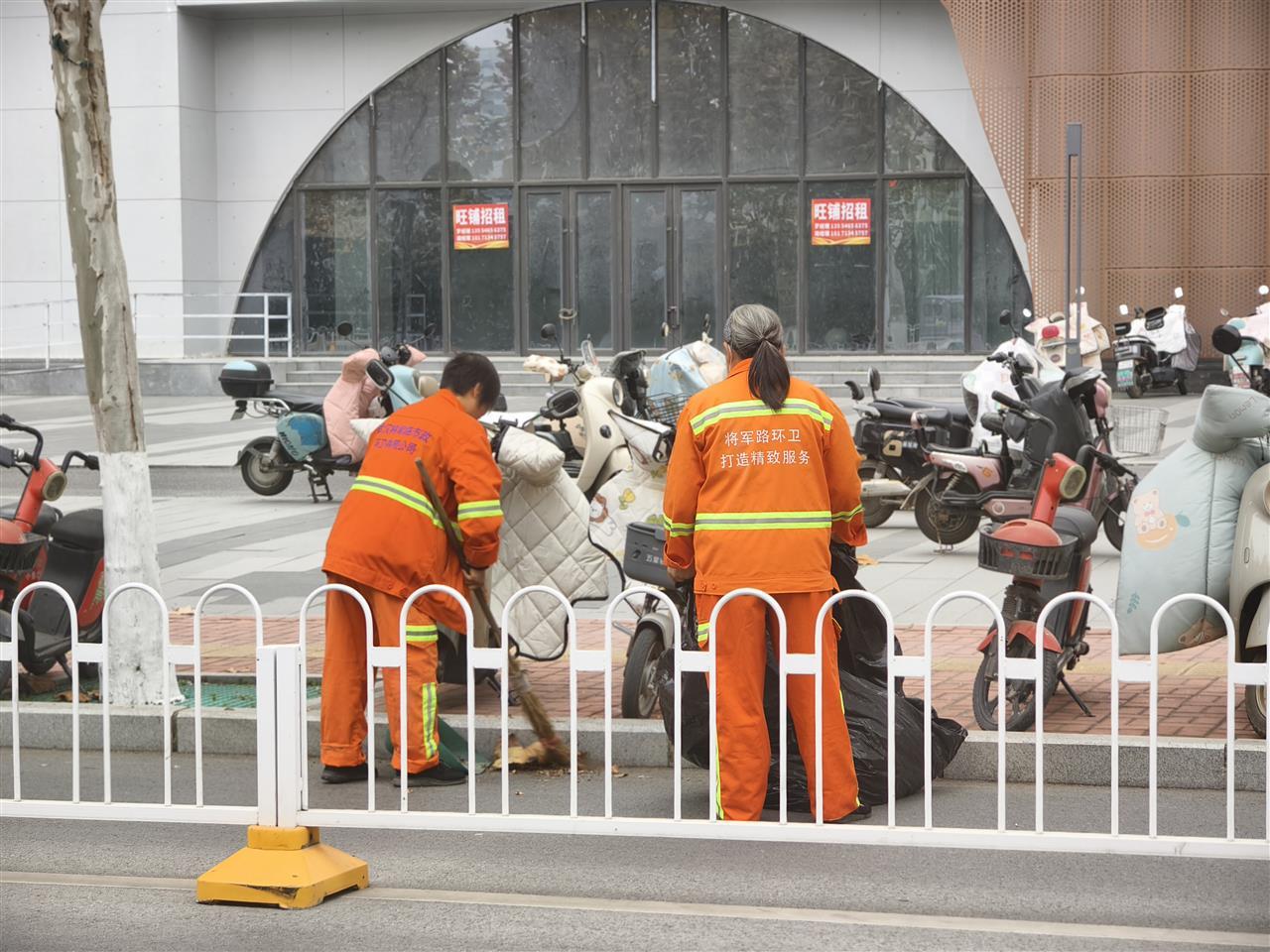 “能让大伙儿踩着干净街巷赏秋景,咱这‘橙衣守护者’的汗水就甜着呢!”环卫工人李大姐笑着说,手中的扫帚在地面划出流畅的弧线。正是这群身着橙色工装的劳动者,用汗水驱散落叶带来的杂乱,让将军路的秋景既有“颜值”更有“气质”。当市民漫步在整洁的梧桐树下,抬头是鎏金树冠,低头是洁净路面时,那抹亮眼的“环卫橙”,早已成为这个季节里最动人、最温暖的温情底色。