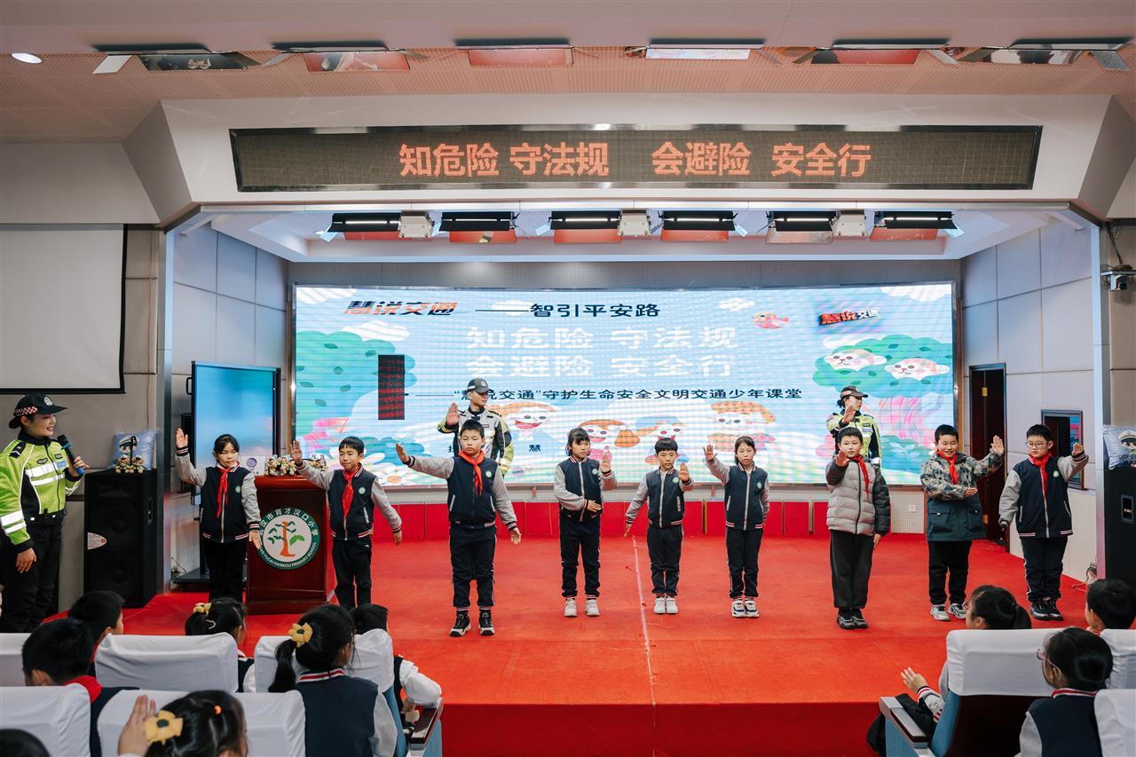 才艺展示环节更是精彩纷呈。四年级6班同学自编自导自演情景剧《马路小卫士》,用童言稚语演绎不文明出行的危害与交警提示;四年级5班的同学们带来自创舞蹈《交通安全记心间》,将快板元素融入其中,节奏明快、刚柔并济,生动传递安全理念。