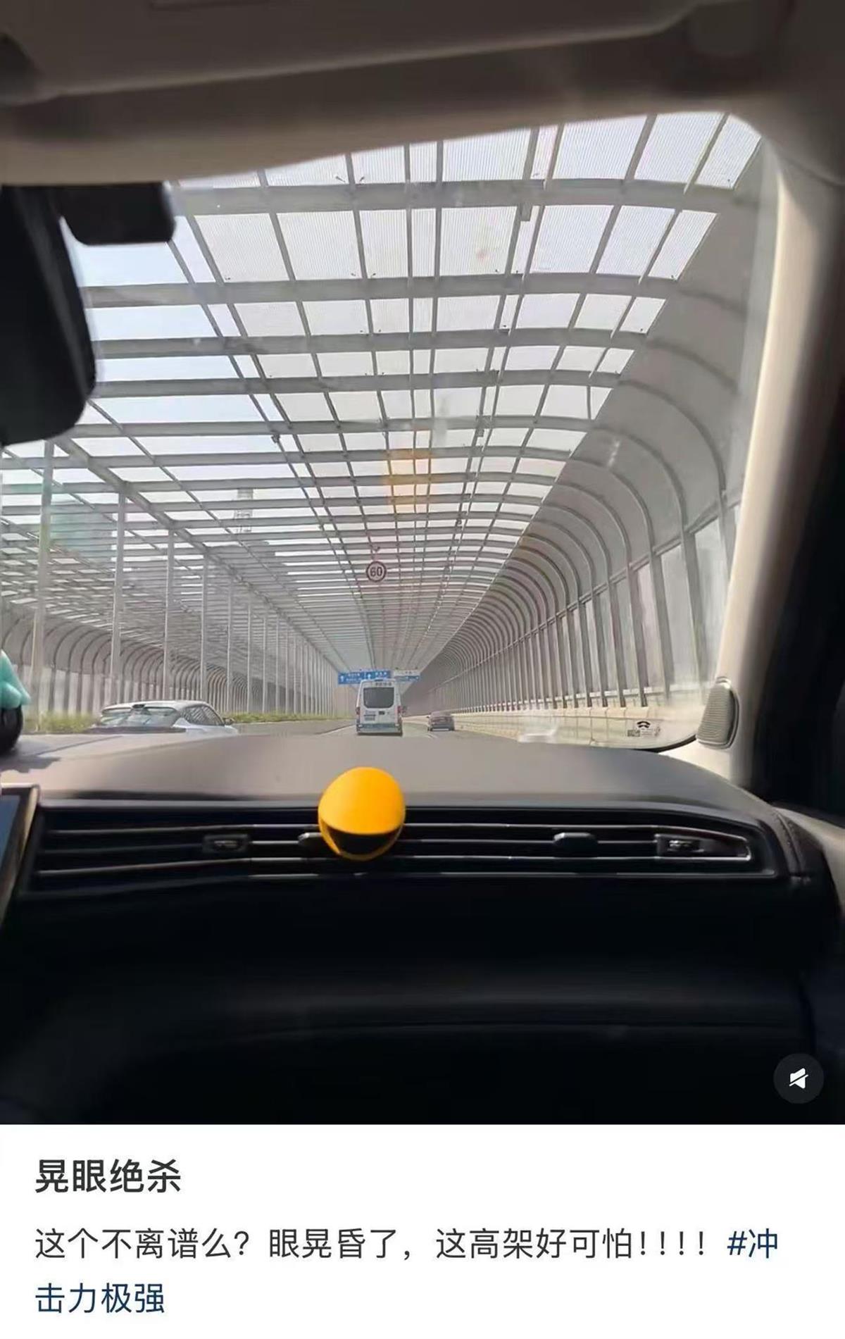12月9日下午1点半左右,阳光明媚,新闻记者驾车以55码时速行驶至该高架沿线居民密集区段实探发现,该路段确实存在明显的“忽明忽暗”光影交替。阳光透过声屏障透光板材间隙投射到路面,形成规律性明暗交错的光影带,车辆行驶中光线变化频率随之加快,强烈的光线交替极易让人产生视觉疲劳和眩晕感,给行车安全带来不小隐患。采访中,不少常走该路段的司机直言:曾因这种视觉误差险些偏离车道;即便在雨雪天气,屏障表面的反光也会干扰视线,进一步增加驾驶风险。