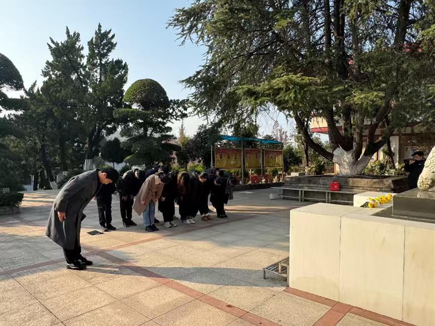 在九峰山革命烈士陵园纪念馆内,全体人员认真参观了陈列革命文物与史料的各个展区。一件件厚重实物、一幅幅历史影像、一段段英雄事迹,生动再现了中国人民抵御外侮、追求解放的壮阔历程。抗战胜利80周年的历史回响与国家公祭日的深刻记忆交融共鸣,使青年学子深刻感受自己所肩负的历史责任和时代使命。大家纷纷表示,将以此次教育为契机,把英烈精神转化为勤学实干、奋发有为的行动自觉,在新时代进程中勇担使命、贡献力量。