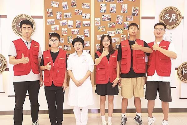 袁晓燕和大学生志愿者在一起