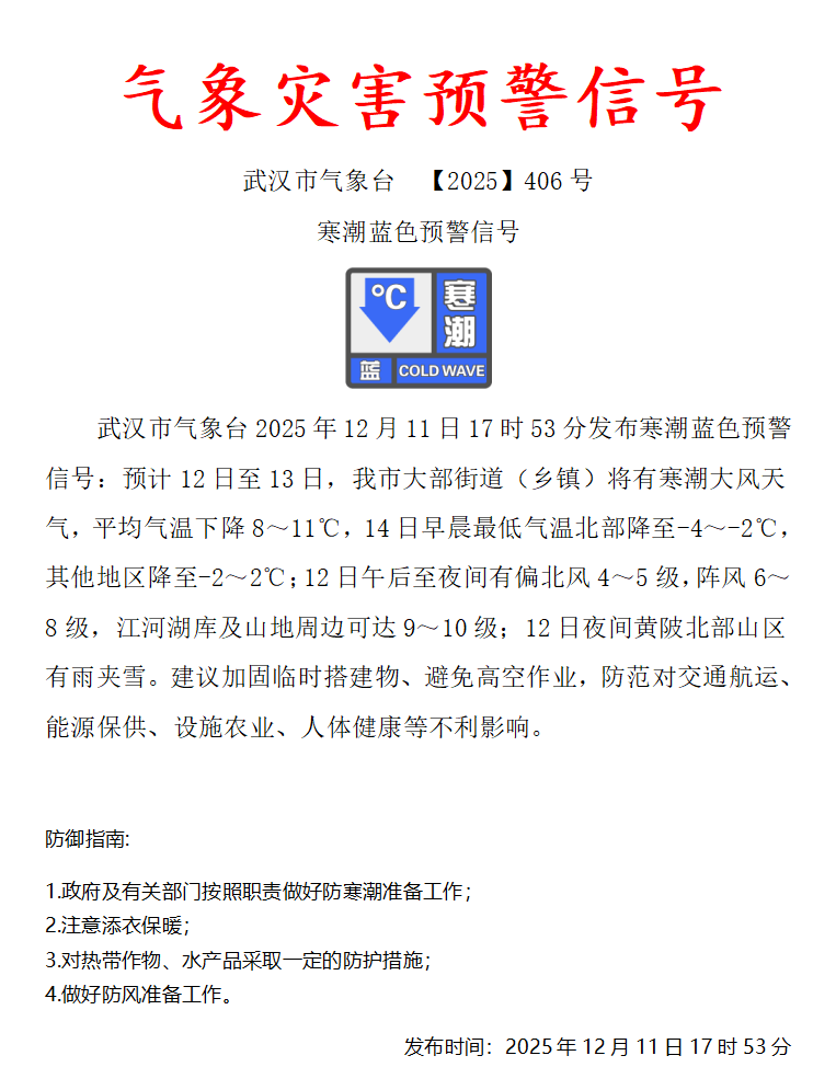 武汉市气象台12月11日17时53分