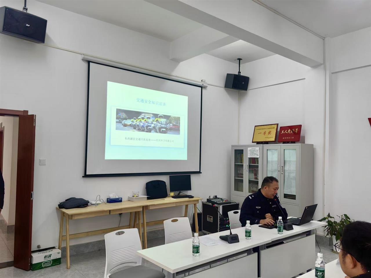 “环卫作业要经常在车流中进行,大家一定要记住,规范穿戴反光衣、设置好警示标识,就是守护自己的第一道防线。”在道路交通安全专题授课时,东西湖区交通大队汪俊警官结合《中华人民共和国道路交通安全法》,详细讲解了道路作业时的安全防护装备佩戴要求、作业区域警示标识设置规范,以及如何应对突发交通状况等关键知识点。