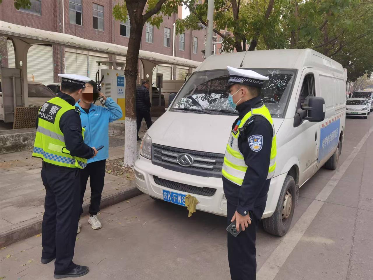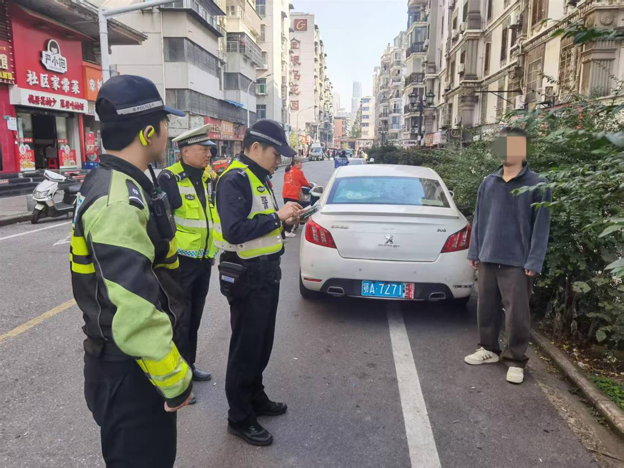 12月1日10时许,一中队指挥室通过电子监控视频巡逻时,发现辖区徐东一路上有一辆小轿车违停且故意遮挡号牌,指挥室民警一边调取城市视频监控录像回放违法经过,一边通知附近警力前往现场处置。