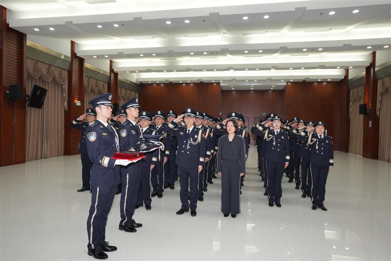 “敬礼!”伴随着雄壮的《中国人民警察警歌》响起,全体人员举起右手致敬,目送昔日战友的警号被移送至分局警史馆。