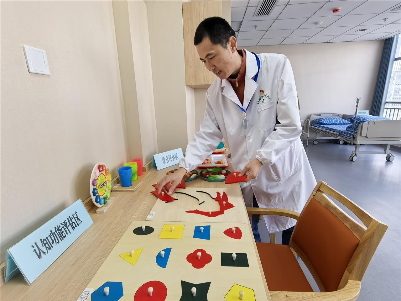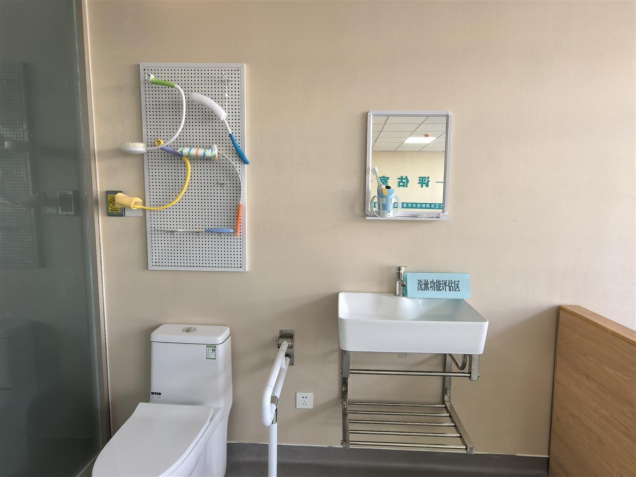 在二楼标准化评估室,记者看到有认知功能、饮食、运动功能、洗漱功能等评估区。