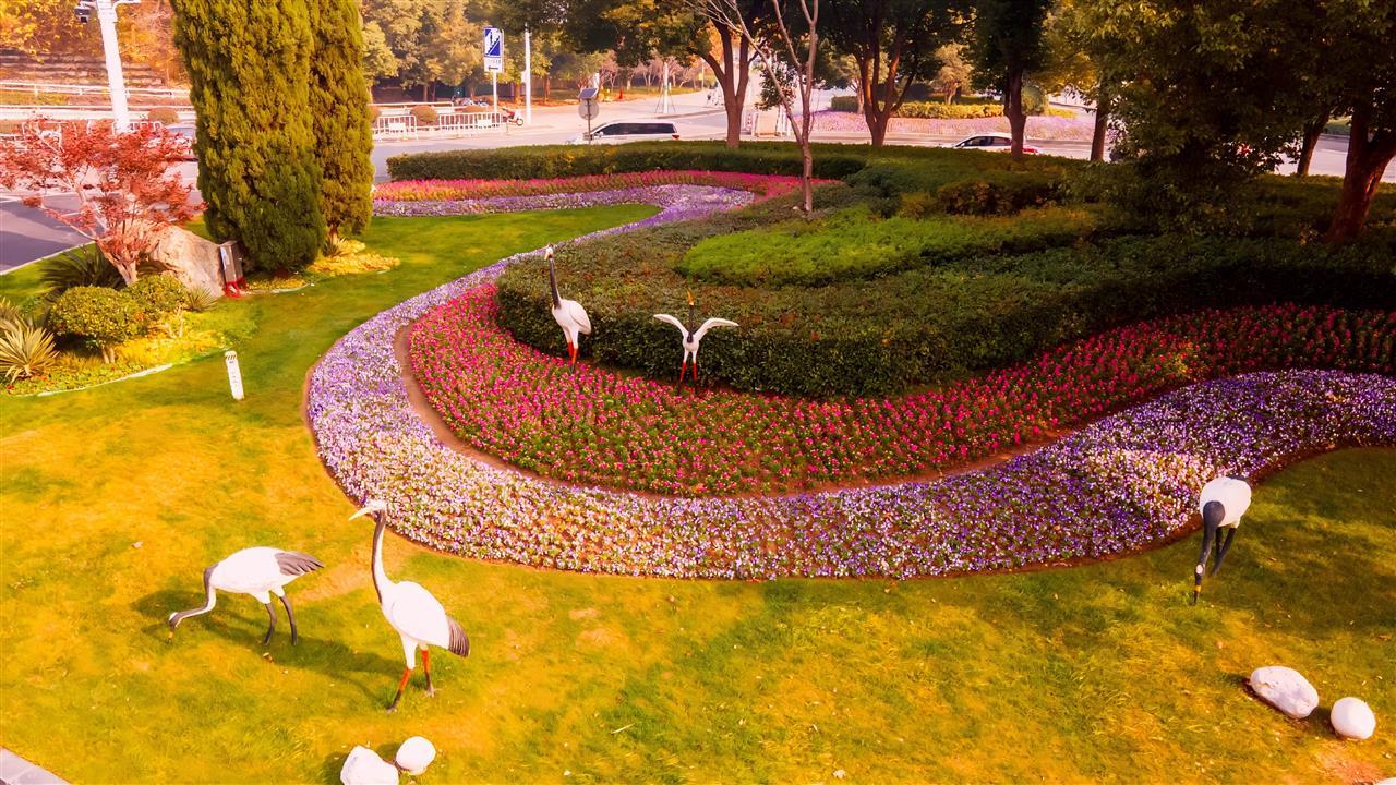 经过楚汉路渠化岛时,不管是从哪个方向,都能一眼看到这片“花境”——嫩黄和淡紫的小花像给草地织了一条波浪纹的花毯,粉色月季裹着花苞在灌木间探头,连修剪得圆滚滚的绿植都跟着生动起来。明明是车水马龙的路口,偏偏被这团鲜亮在冬季裹出了春天的暖意。