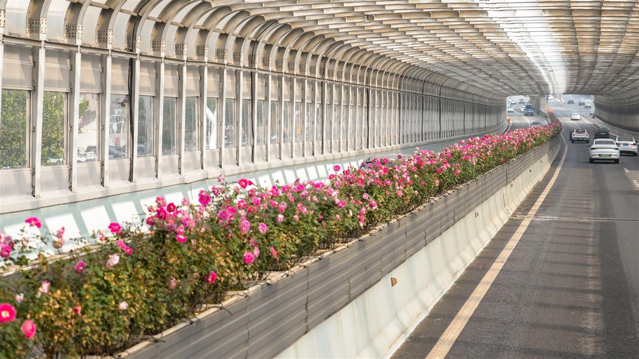 为迎接元旦的到来,武昌区城管执法局绿化队通过精心养护,让月季绽放在冬日的街头,在友谊大道快速路的中分带上,1.8公里的“仙境”月季长廊正肆意铺展,像是把“花房”搬上了城市交通线:弧形的金属框架撑起透亮的顶,中分带的花槽里满是盛放的月季,粉艳的花团裹着翠绿的枝叶,顺着道路曲线一路铺展。车辆穿梭其间,头顶是透进来的柔光,身旁是垂落的花影,通勤路瞬间变成了“穿花而过”的浪漫旅程。