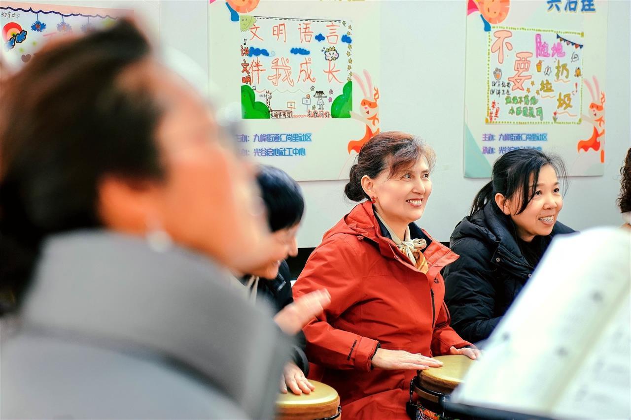 “每天下午来练书法,接完孙子晚上又跟着舞蹈队跳舞,社区的活动空间比自家还热闹。”家住武汉东湖高新区仁尚里社区的张女士随子女在光谷定居生活,发现了丰富晚年文体生活的“新大陆”。