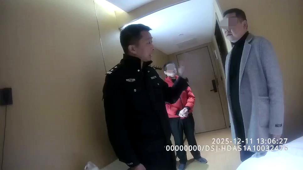 接到指令后,球场街派出所民警彭博隆立即展开视频追踪。画面显示,女子冯某离开银行后,与一名佩戴口罩的男子短暂碰头,随即前往西马辖区某酒店。“行动!”线索锁定后,民警陈世聪、周启航、杨涵羽立即带领辅警张骏赶往酒店,在客房内将冯某及接头人梁某当场控制。