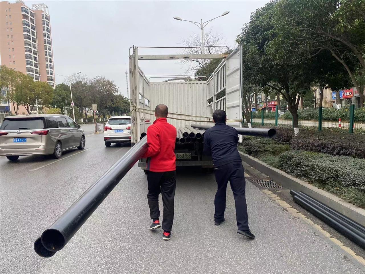 他们首先着手处理挤占路面的PE管,两人或环抱或肩扛,在车流间隙中争分夺秒地快速搬运。与此同时,他们还细心地捡拾着散落的弯管和扣件,将编织袋和纸箱一同转移至安全地带,这样既避免了二次事故的发生,也为货主尽可能减少损失。
