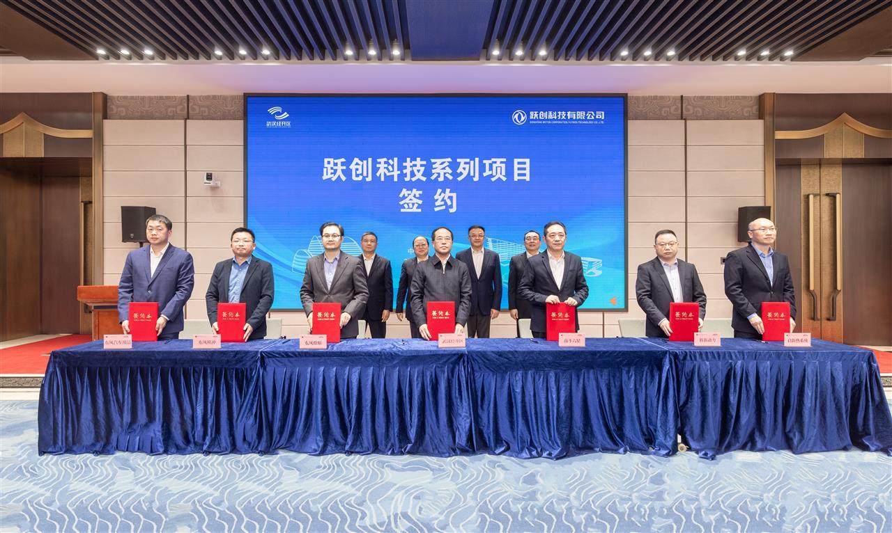 活动现场,武汉经开区管委会和跃创科技签订合作协议,武汉经开区管委会与跃创科技旗下科新动力、启新热系统、南斗六星、东风模冲、东风燎原、东风汽车用品等签订合作协议。