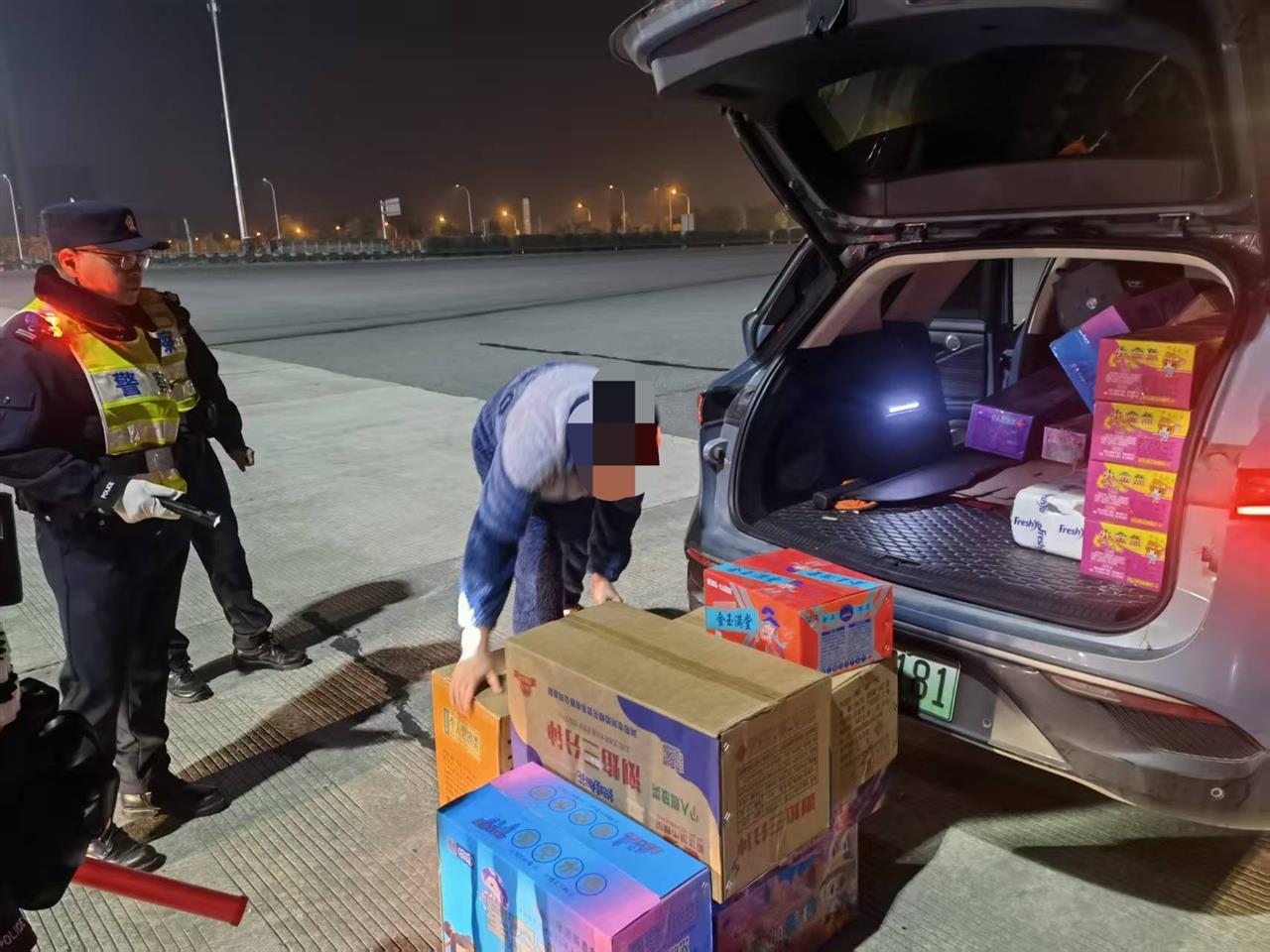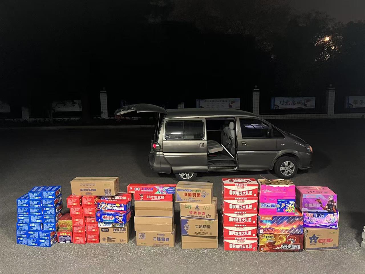 12月6日凌晨1时许,一辆SUV新能源车在洪山区分局张家湾检查站的卡点被拦下。民警观察到前排一男一女面色紧张,当打开其后备箱时,竟发现里面藏有42箱未拆封的烟花爆竹。