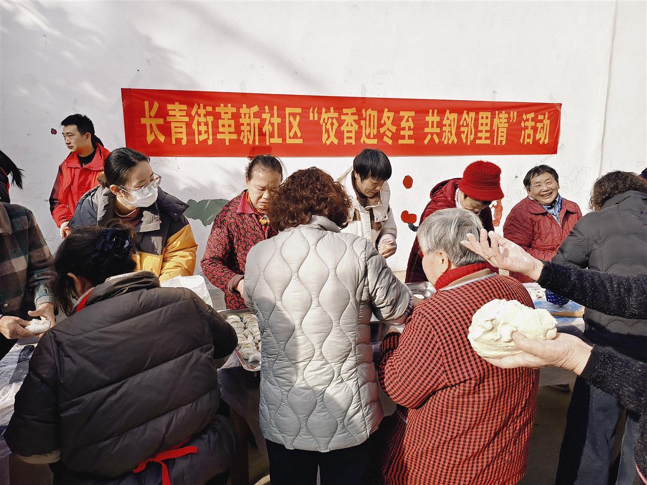 12月16日,武汉市东西湖区长青街革新社区联盟村文体广场举办了“饺香迎冬至,共叙邻里情”主题活动。