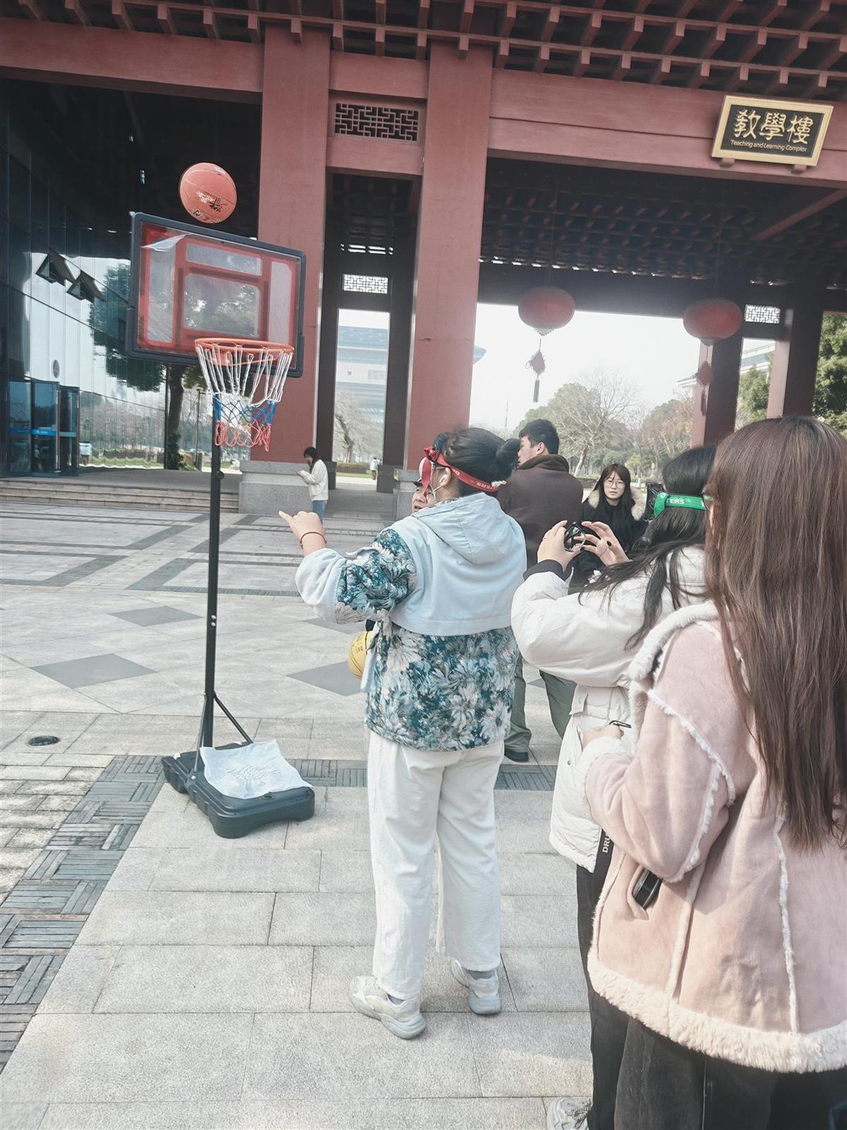 有的同学戴上模拟眼镜参与投篮游戏。平日里轻松就能投中的篮筐,戴上模拟眼镜后变得“遥不可及”,不少同学连连失手,真切体会到酒驾对视线和判断力的严重危害。“戴上眼镜后看东西都是模糊的,更别说开车了,以后绝对不酒后开车,也会积极劝阻亲友远离酒驾!”刚体验完的吴同学感慨道。