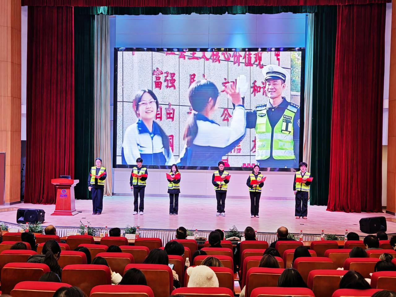 随后,精彩节目轮番上演。江夏分局交管大队民警带来的歌曲《我的战车》,唱出了交通民警守护道路平安的责任与担当;朗诵《路口星光城市脊梁》,字里行间饱含对交通守护者的敬意;幽默诙谐的小品《为爱急刹车》,以贴近生活的剧情,生动诠释了文明驾驶的重要性;歌曲《世界赠予我的》《新的天地》等悠扬动听,传递出青春向上的力量。最后,武汉学院学子的大合唱《青春向阳》在报告厅内回荡,激昂的歌声为本次活动画上了圆满的句号。