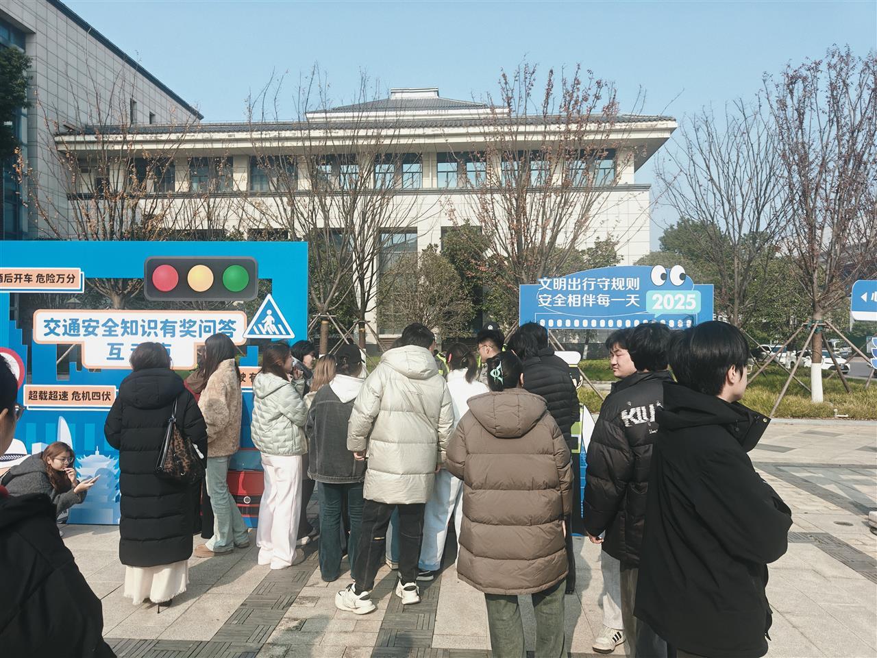 在交通安全有奖问答互动点前人气爆棚,面对一道道贴近日常出行的交通法规题目,师生们纷纷积极抢答,现场气氛热烈,大家一边参与挑战,一边主动分享活动动态,让交通安全理念在社交圈中广泛传播。“我刚领到了一个交警小熊,太开心了!还把活动分享给了室友,让他们也快来学习交通安全知识。”手持礼品的邹同学笑着说道。