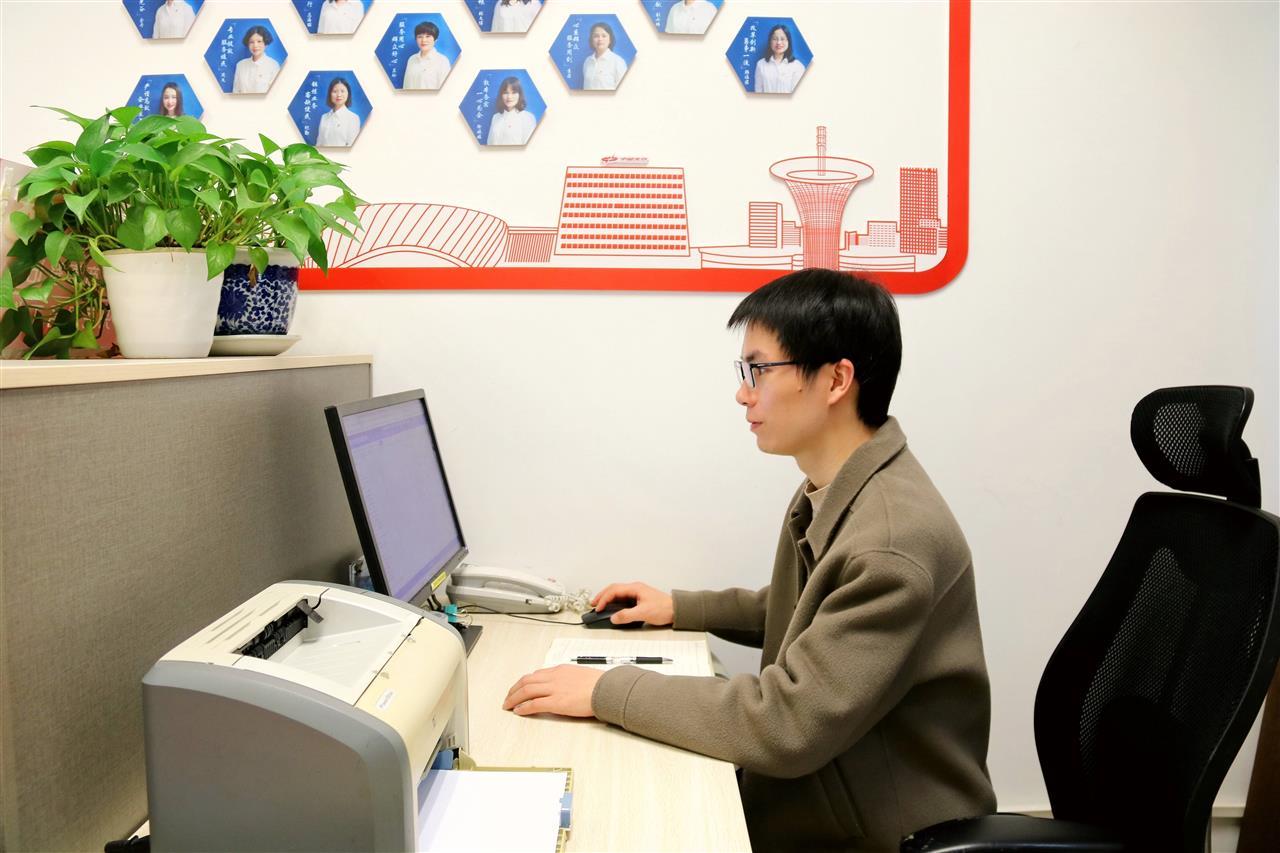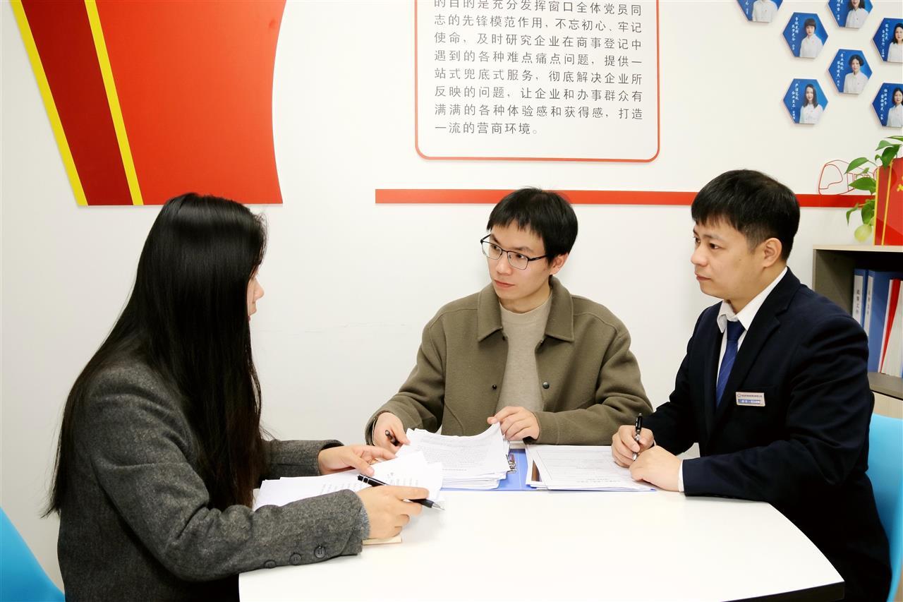 雷青的岗位就在陈宇工作窗口后面。这位2018年毕业于清华大学的硕士研究生,凭借着踏实认真的工作韧劲,成功从政务服务的“门外汉”蜕变为商事登记的“业务通”。2019年以后,他更成为商事登记党员兜底服务工作室的骨干。