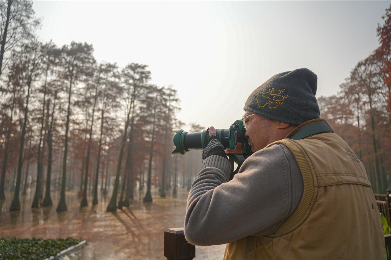 12月18日,当清晨的第一缕阳光穿透涨渡湖湿地的池杉林时,1万余株橙红的树片像燃烧的火焰,热烈而又奔放。来自武昌区的王惠兰女士,沿着伸向湖中的木质栈道漫步,“以前来这里,没有停车位,现在直接把车停在林下停车场,下车就能漫步红杉林之间,很便利。”