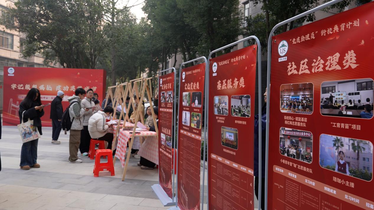 在现场观摩环节,“党建助理员”招募点吸引了与会人员的目光。第三批“党建助理员”街校共育计划招募正火热进行,青年学子们纷纷驻足咨询、踊跃报名。这一由珞珈山街道与武汉大学政治与公共管理学院、文学院共同孵化的特色项目,三年来已吸引百余名学子扎根基层一线,深度参与社区治理、便民服务、项目协调等工作,近日更荣获2025年湖北省青年志愿服务“社区计划”竞赛优胜项目奖。“对我们来说,这不仅是一次实习,更是一场与社区的‘双向奔赴’。”来自政管学院的王忆雪同学在分享中感慨道。便民集市里,党员骨干、大学生志愿者正为居民提供义诊、维修等服务,成为“组织共建、活动共联、服务共做”的鲜活缩影。