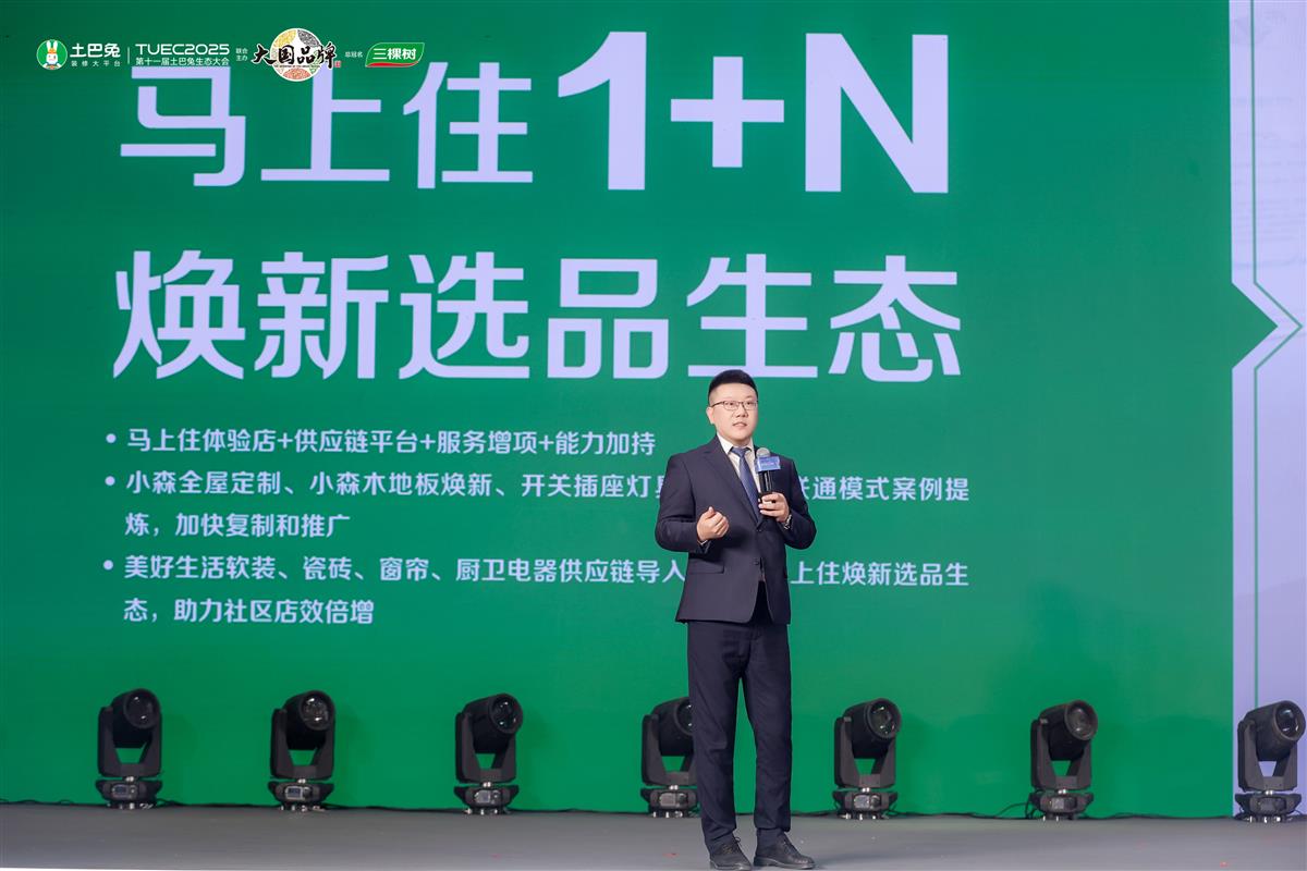 三棵树马上住焕新事业部总经理王通虎受邀发表主题演讲,系统阐述品牌在绿色家居领域的创新突破与战略布局。他表示,三棵树以“好房子”战略为引领、以“焕新”战略为抓手的业务蓝图,精准把握扩大内需、以旧换新等时代机遇,全面升级“马上住焕新服务”,构建“产品+服务+数字化”的一站式解决方案,直击传统家装痛点,依托“马上住”一站式焕新服务生态将“绿色家装”从产品层面延伸至全链路服务,构建覆盖全国310+城、1500+服务商、累计服务42 万+家庭的健康焕新网络,成为推动家居产业服务化转型的重要力量。