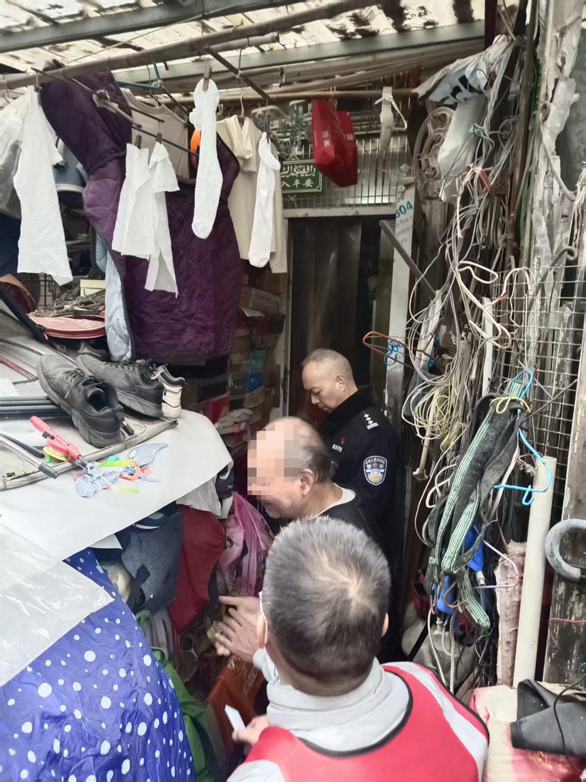 经过细致询问,民警了解到,居住在这里的是一对年过七旬的夫妇——73岁的买婆婆和洪爹爹。买婆婆平日有捡拾废品补贴家用的习惯,但近期因身体不适没有及时变卖,捡回的废品越堆越多,“不是不想清,实在是力不从心。”面对民警的关心,老人无奈地摇头。