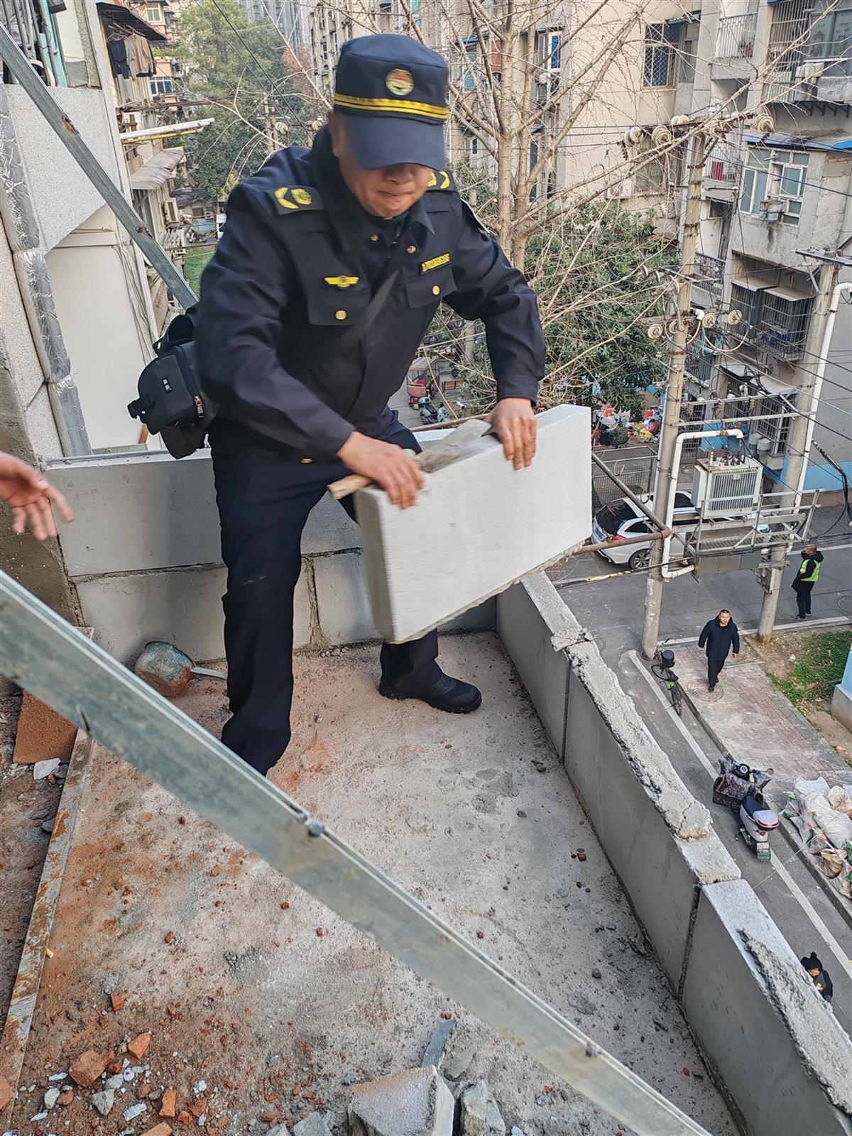 为确保拆除过程安全、快速,最大限度减少对楼栋其他居民的影响,处置小组现场制定了高效拆除方案。执法队员参与拆违行动,将已砌好的砖块一块块小心卸下。在大家的协同作业下,这处刚刚“冒头”的违建被彻底拆除,产生的砖块等杂物也被当场清理运离,现场迅速恢复原貌。
