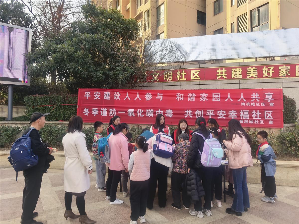 近日,武汉经开区沌阳街道海滨城社区在官湖郡小区开展平安创建暨冬季预防一氧化碳中毒宣传活动,将安全知识送到居民家门口。