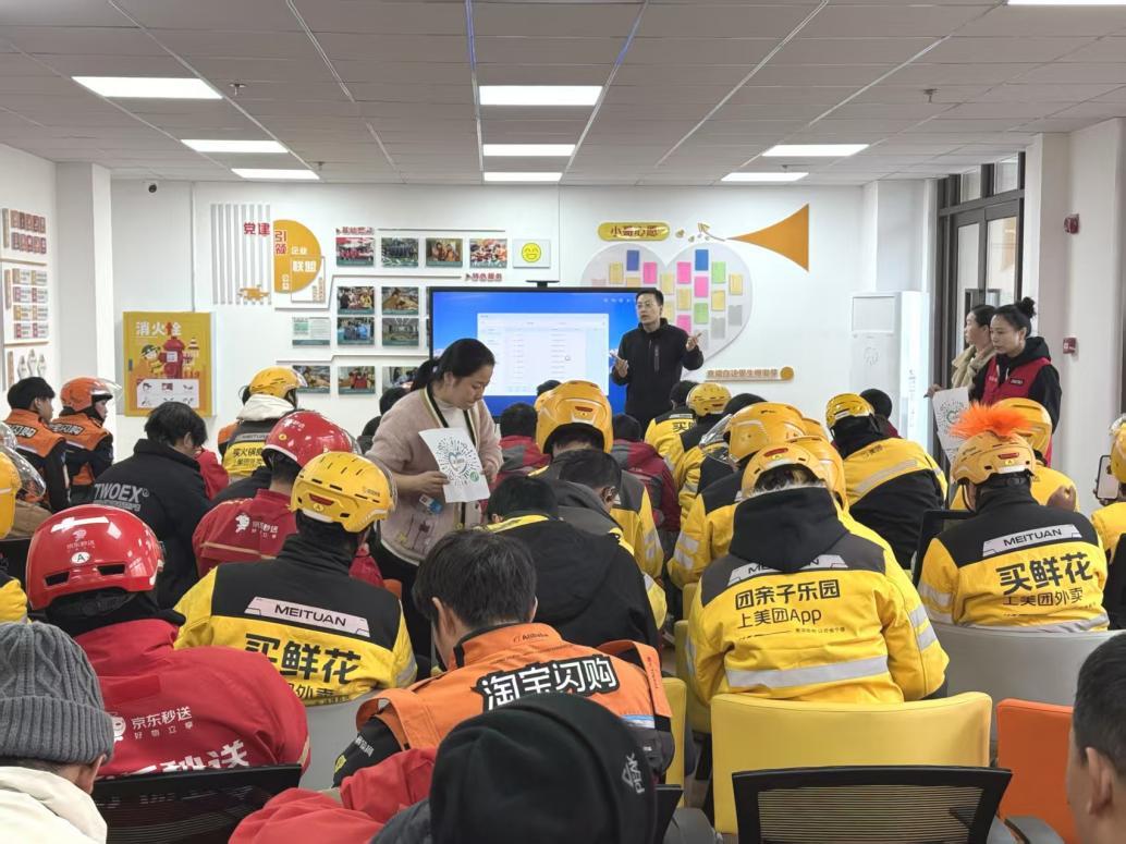 活动伊始,驿站服务人员为150余名小哥详细介绍了“江城云上驿站”升级后的多元便捷服务,新注册成员可免费领取一年期意外险,为工作中突发情况提供基础保障;联动广美食堂、老乡鸡等暖“新”商户提供日常就餐优惠;平台同步展示一线服务点位分布,标注服务清单,实时收集心愿,定期更新“小哥报事”积分兑换清单与兼职网格员招募信息,让便捷服务触手可及。