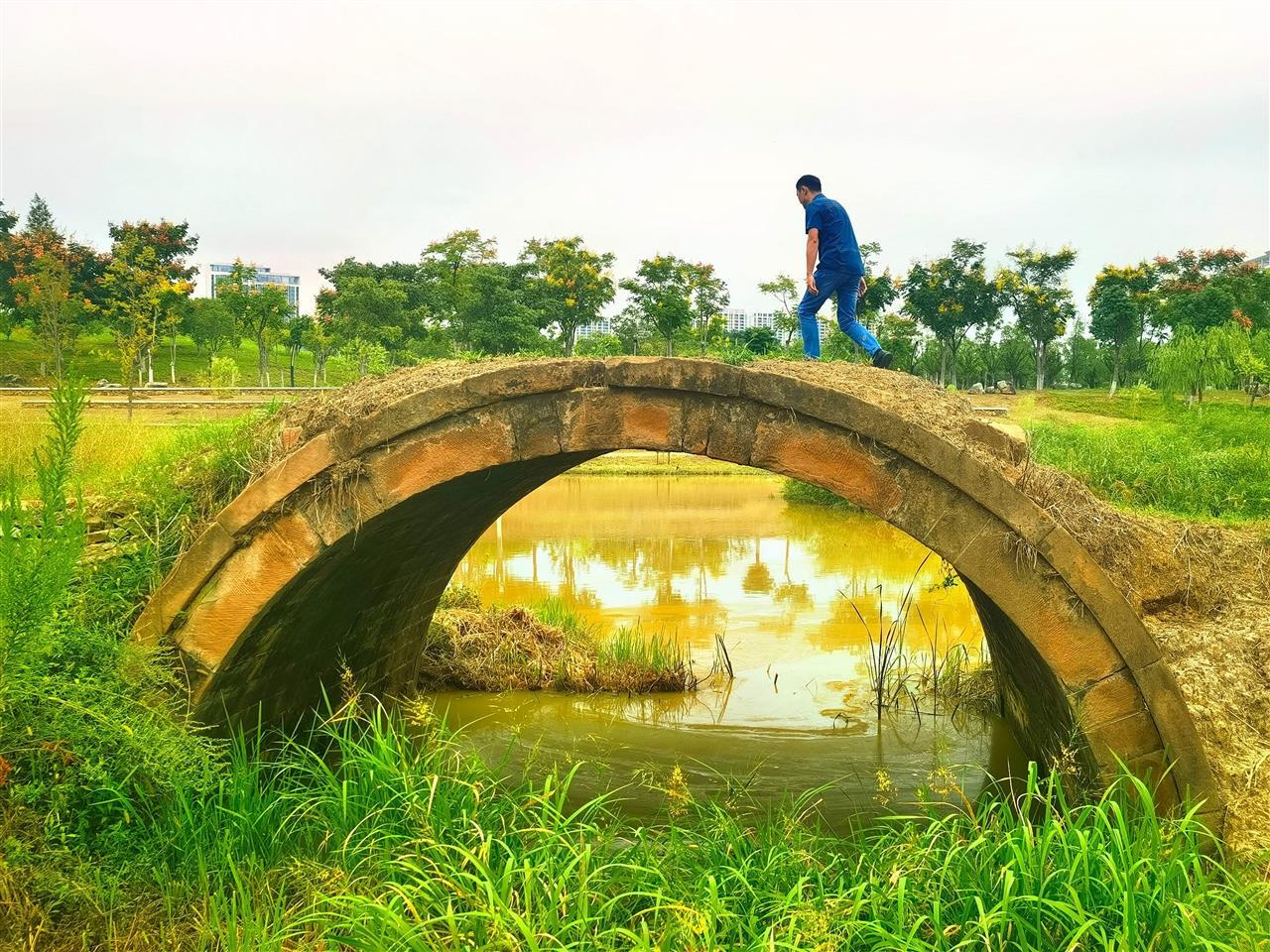 因名称引发跨城关注的明代“重庆桥”,是此次新发现文物中的亮点之一。该桥位于左岭街道三湖街东北约127米处、玉龙河生态廊道公园内,为单孔石拱桥,桥身呈抛物线弧形,由条石垒砌而成,实测跨度超6米、高近3米、桥面宽5米多。新闻记者此前在现场看到,桥拱最高处的条石上仍隐约可见繁体“重庆桥”字样,虽已风化但依稀可辨。