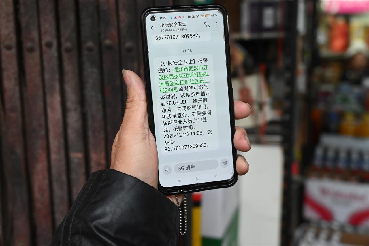 据施工安装方介绍,工作人员上门安装后会立即激活设备并协助用户绑定手机,确保预警信息直达责任人。中国电信江汉区工作人员程龙春介绍,若用户未及时处理警报,系统将自动升级通知,通过平台派遣专业人员介入,进一步遏制安全隐患。