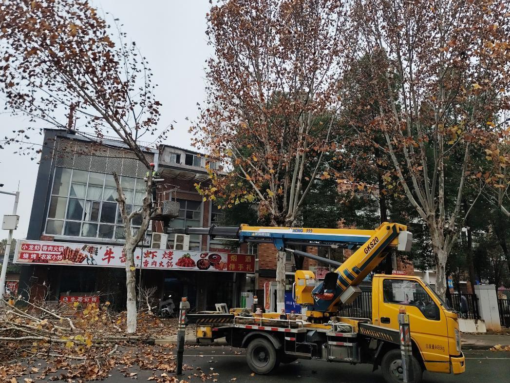 近日,武汉东湖高新区豹澥街道九龙湖社区联合辖区共建单位东湖高新区城管局第二党支部,对社区主干道两侧生长过盛的梧桐树进行了集中修剪,以解决树枝遮挡路灯、风雨天气易断落的安全隐患,赢得了居民的一致好评。