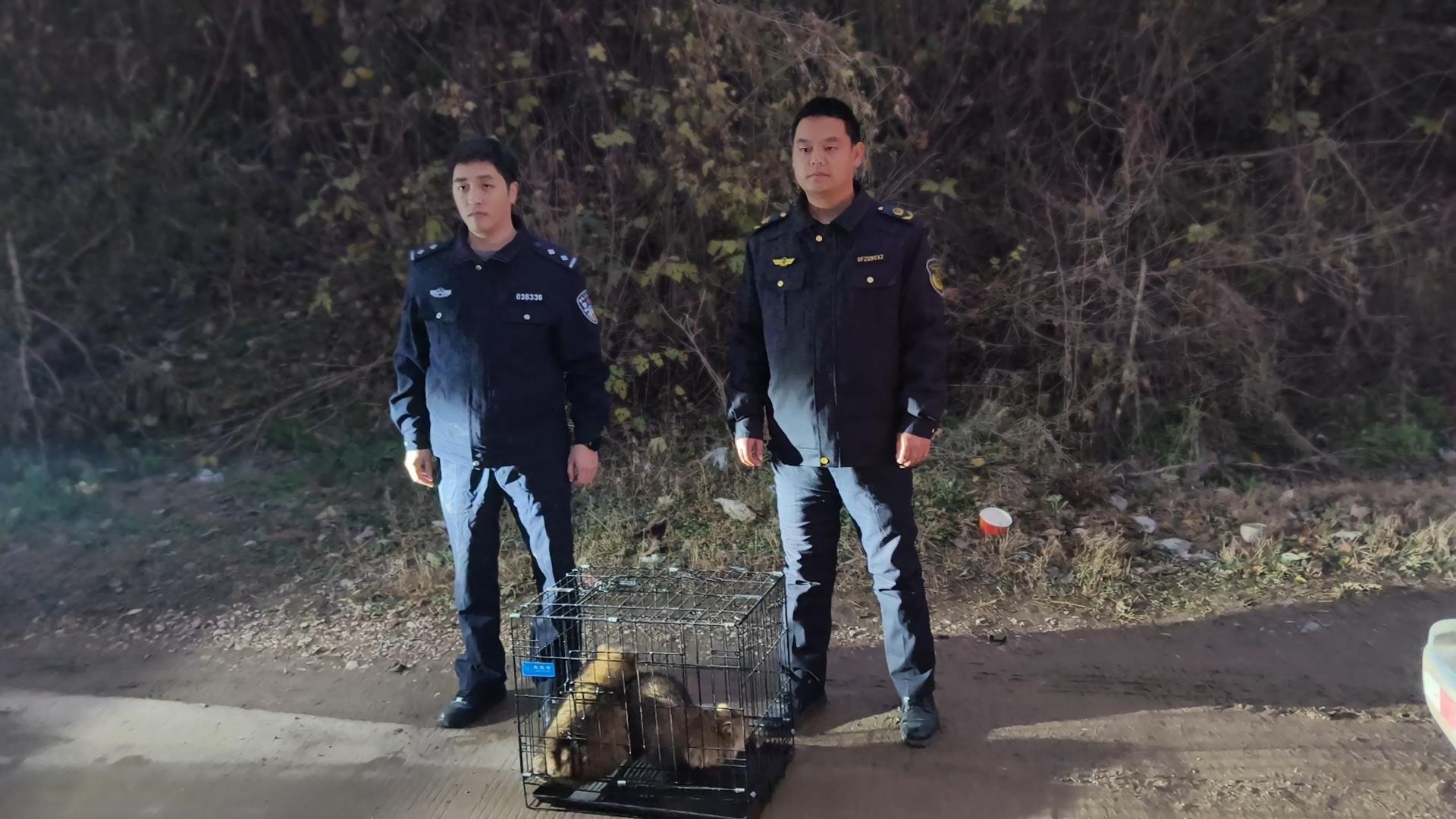 执法人员将貉放归山林