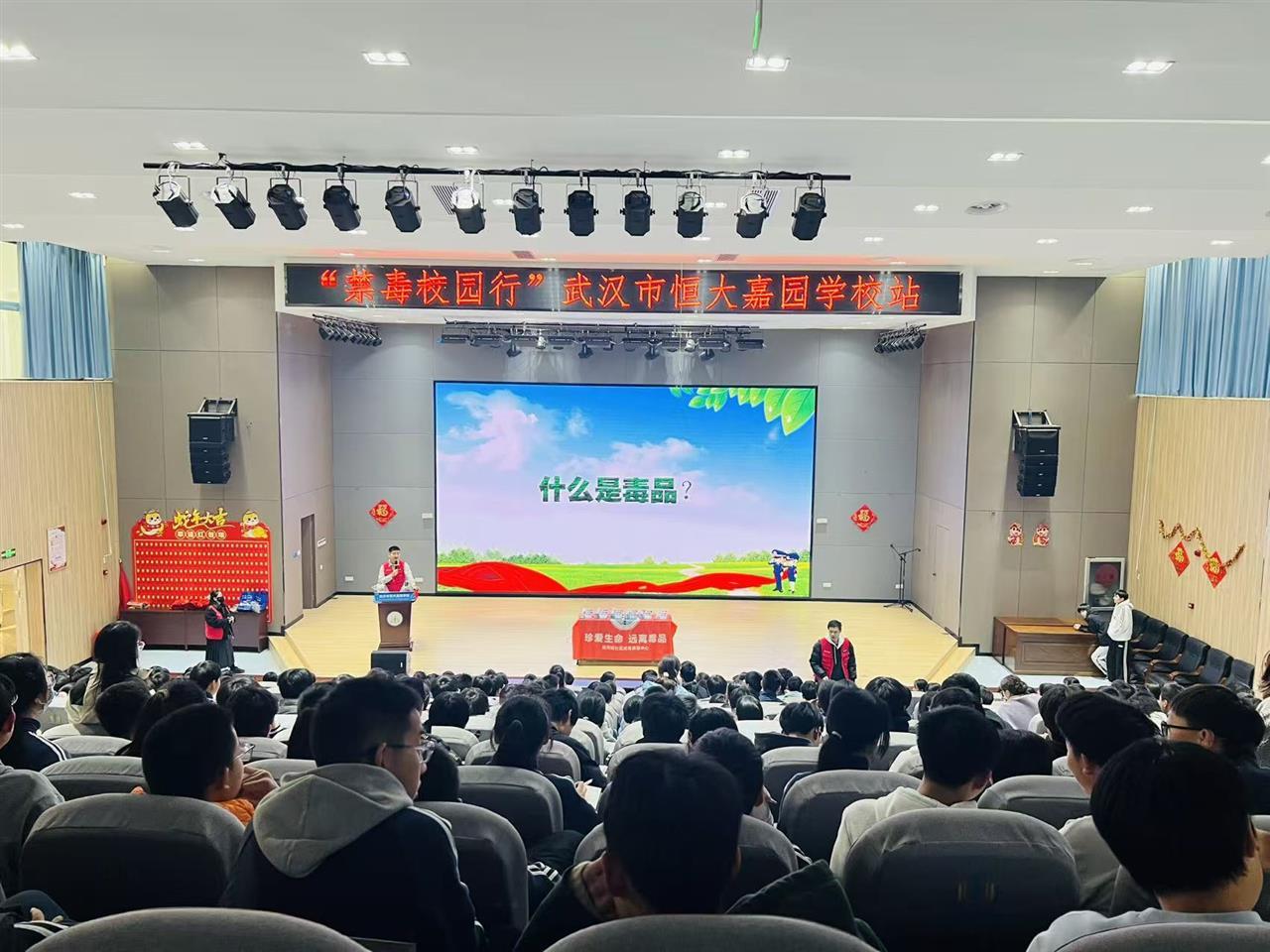 12月19日下午,武汉市东西湖区反恐禁毒办携手三店派出所、长墩堤社区,走进武汉恒大嘉园学校,为同学们带来了一堂生动而深刻的禁毒宣传教育课。