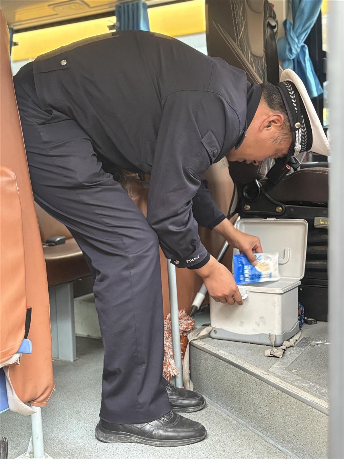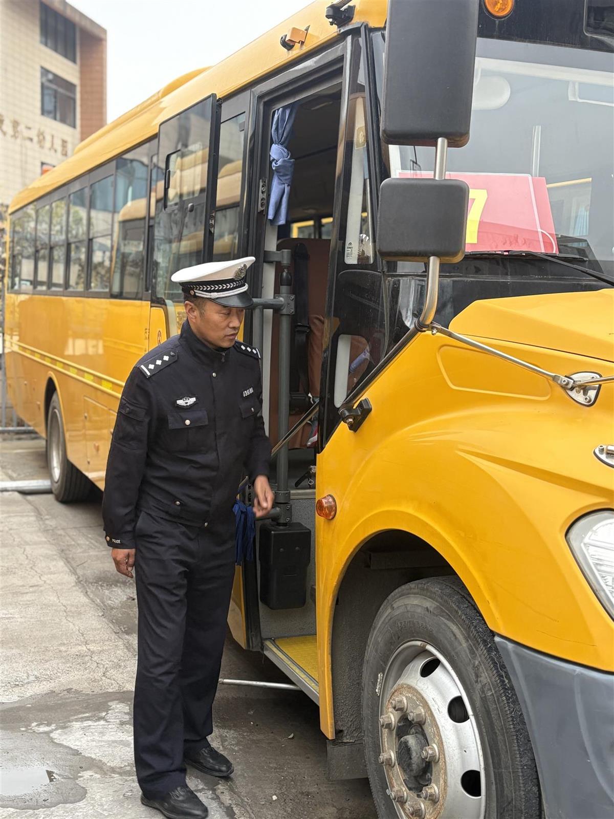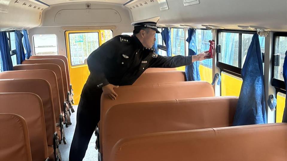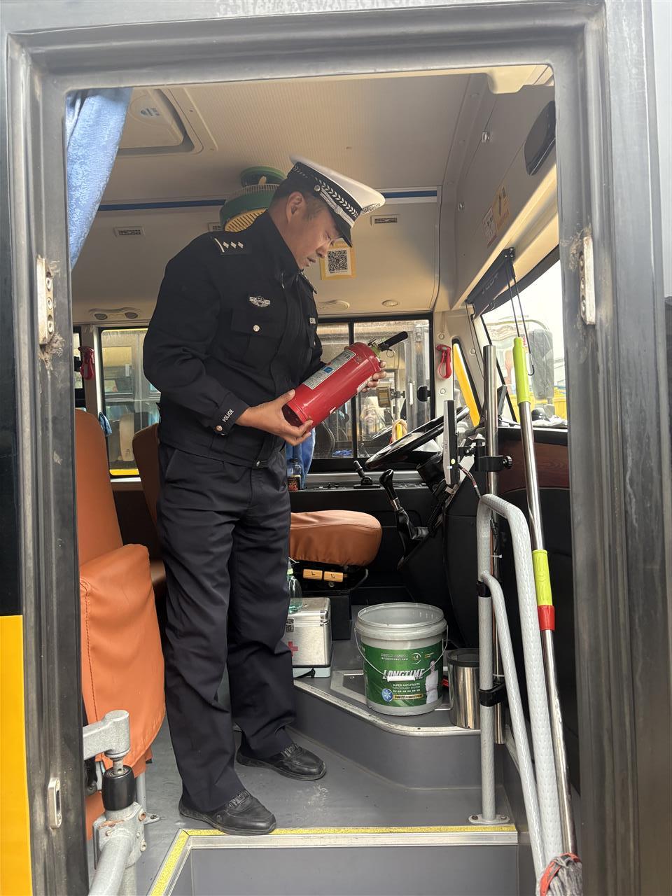 在现场,民警王英钊重点围绕应急安全保障环节,对车载紧急救护用品、安全锤、灭火器等应急设施的配备数量、使用有效期及技术性能进行了逐一测试检查,确保各类应急装备100%配备到位、状况良好、随时可用,切实提升校车应对突发事件的处置能力。