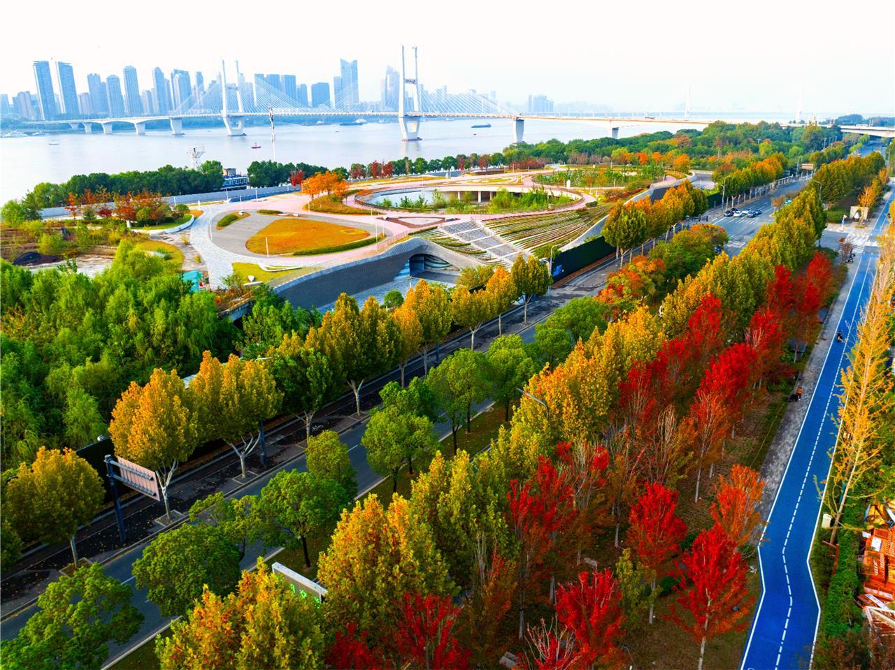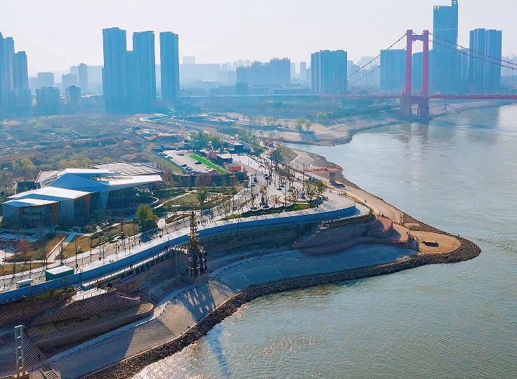工业遗产也在“绣花功夫”下实现华丽转身。位于鹦鹉洲长江大桥附近的武昌湾江滩,以“历史传承、生态融合、活力共享”为核心理念,通过堤防改造、护岸坡加固与景观绿化等举措,让旧厂区的钢铁脉络与江滩的碧波绿意相映成趣。项目改造依托原武船厂区工业遗产与长江自然景观,贯通武汉百里长江生态廊道的“最后一公里”,连接武昌古城与滨江商务区,提升防洪能力与城市品质。