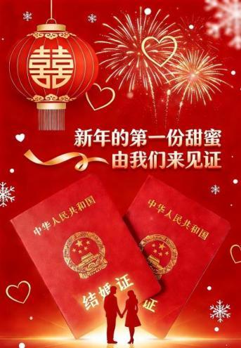 2026年1月1日,武昌区婚姻登记处将“为爱加班”,开展延时服务,服务时间9:00-12:00,新人可提前2个工作日下载鄂汇办“APP”进行预约。让幸福的誓言在新年第一天庄严许下,美好的婚姻从岁首伊始甜蜜启航。