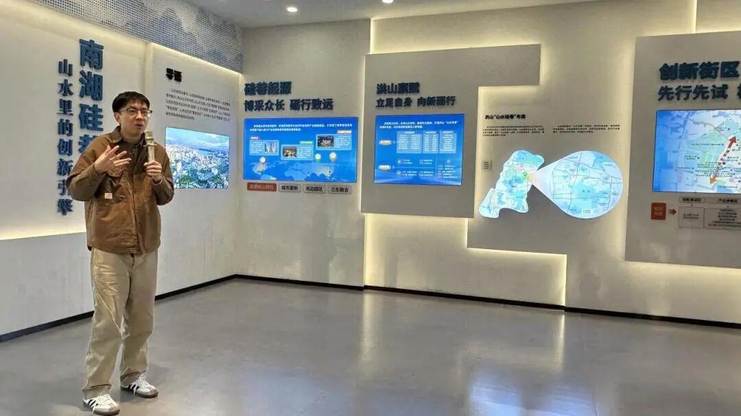 在洪山环大学创新发展带展厅,干部们循着“嘱托——禀赋——蓝图——实践”的清晰脉络,系统把握建设核心要义。展厅内,35所高校、60万名在校大学生的科教资源优势,1500余家高新技术企业的集群效应,195亿元技术合同登记额的丰硕成果,生动诠释了“大学之城、智汇洪山”的深厚底蕴。从《“山水星光”计划》纲领引领到“星光科转8条”政策支撑,从“一带四巷多街区”空间布局到“概念验证——中试孵化——产业培育”全链条机制,干部们进一步明晰了“山水硅巷”品牌打造的战略路径,深刻理解了“三区联动、三新合一、三生融合”的发展理念,为精准落实各项建设任务筑牢了思想根基。