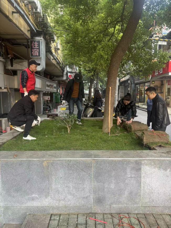 精绣安全防线,活化街区空间。街道始终坚持将市民安全置于首位。针对福寿村17号等老旧房屋外立面破损、高空坠物风险突出的问题,街道主动对接产权单位高效完成约25㎡的外墙修复,同步实施墙绘美化工程,打造具有人文特色的街巷景观,实现“危墙”到“景墙”的转变。此外,街道启动“吹哨报到”机制集中整治汉中路人行空间狭窄、汉正街多处花池黄土裸露等隐患问题,联动区城管局道路科、园林科现场办公,铺设500余米的平整透水铺装,拓展人行空间有效宽度达2.5米,并系统实施“增绿补绿”工作,累计补植绿化约90㎡,构筑起连贯的生态绿道,显著提升了公共空间的安全性与景观性。